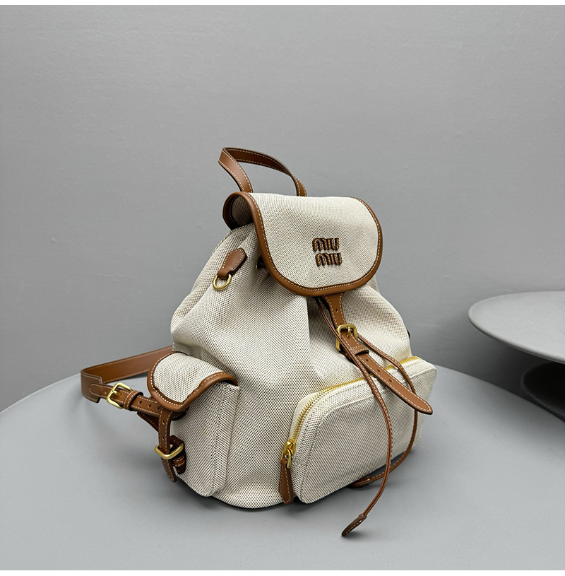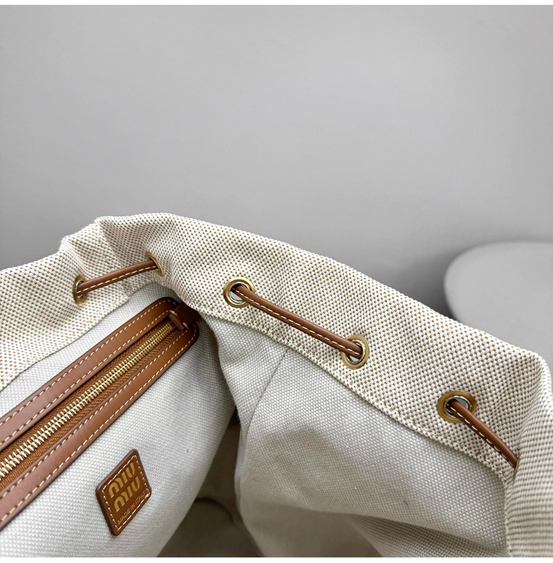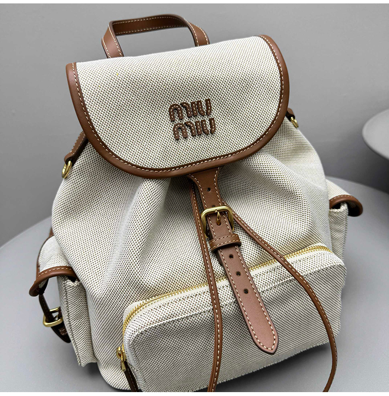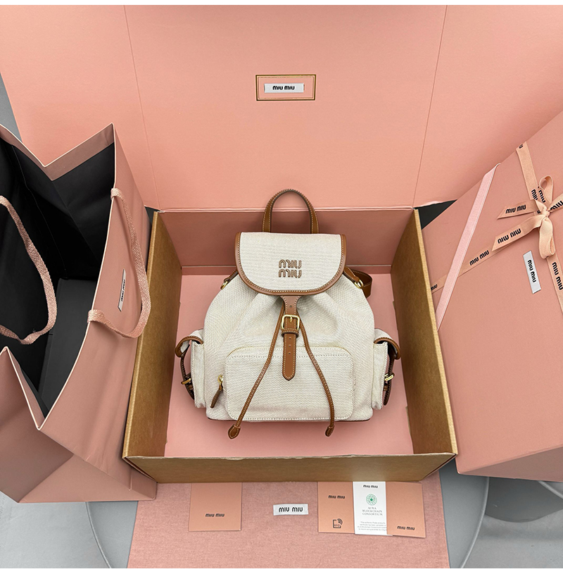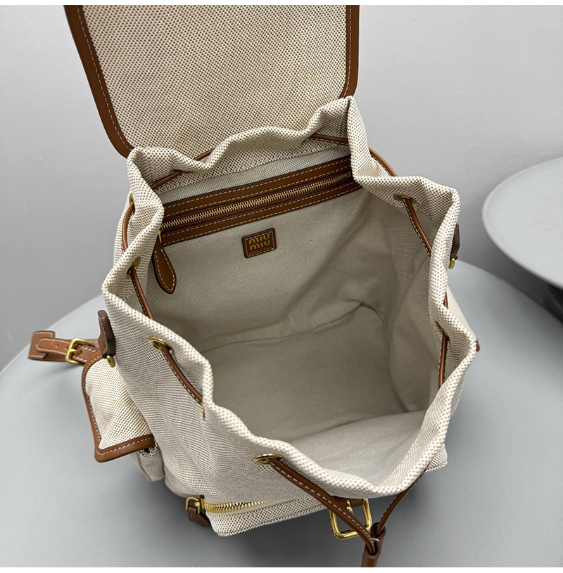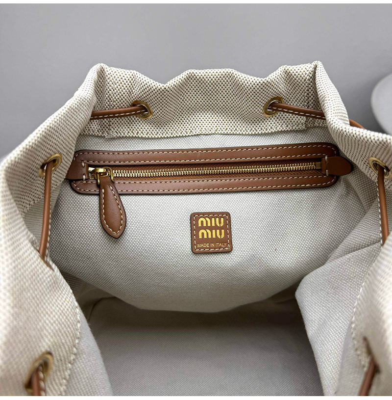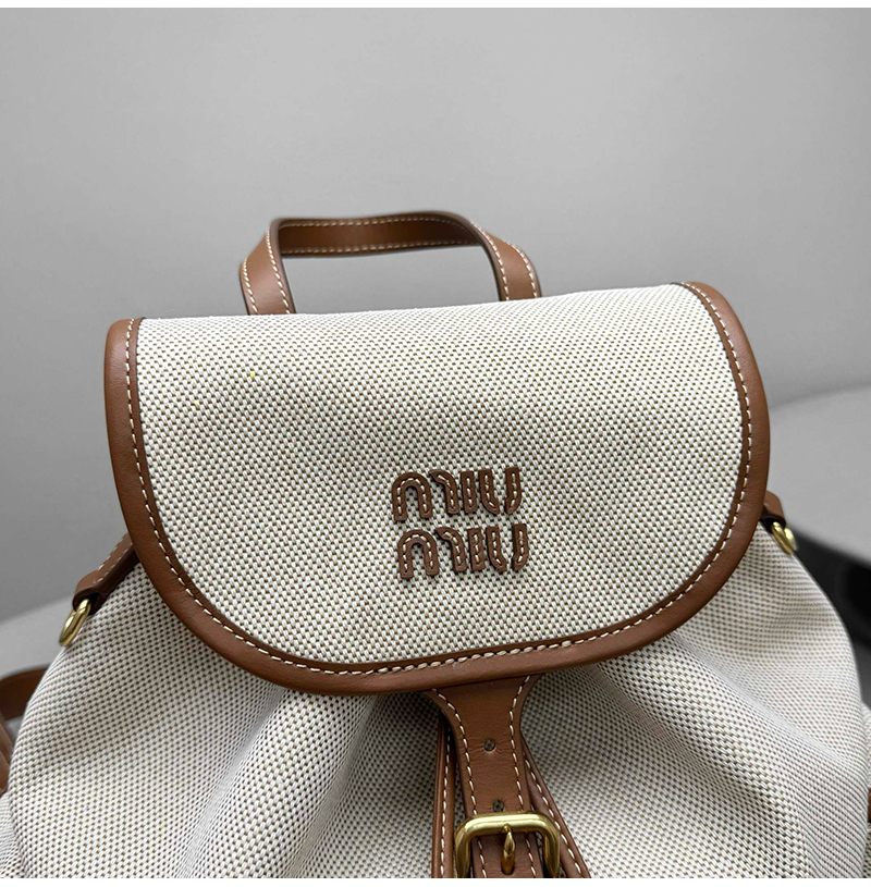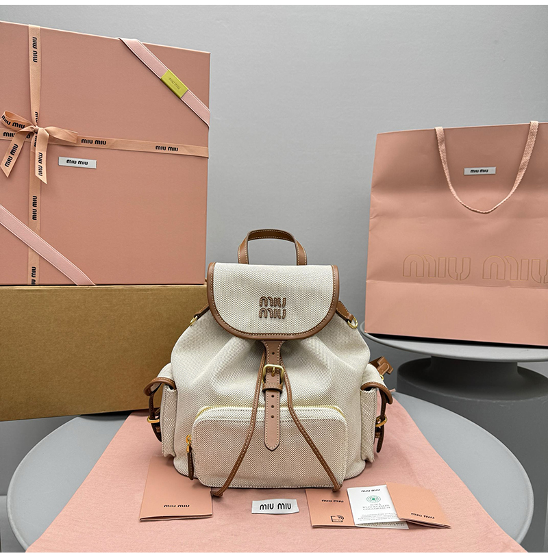 [스페셜오더]MIUMIU-5BZ042 미우미우 캔버스 및 가죽 백팩 베이지