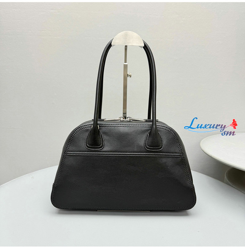 부드럽고 기능적인 비율을 가진 이 백은 볼링 백 실루엣에서