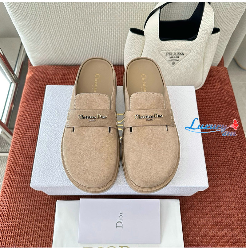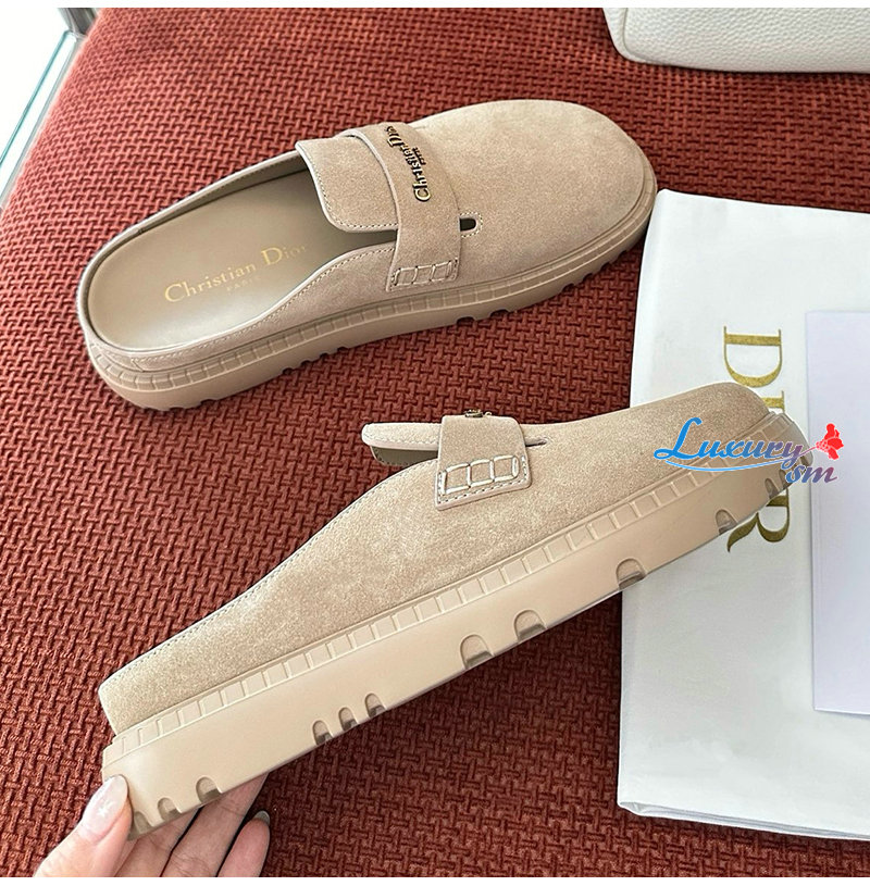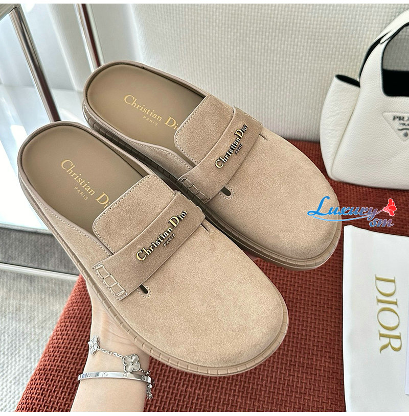 DIOR-3DY7626 디올 스웨이드 가죽 뮬 슈즈 베이지 여성용