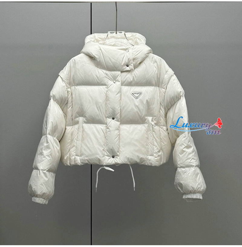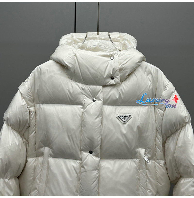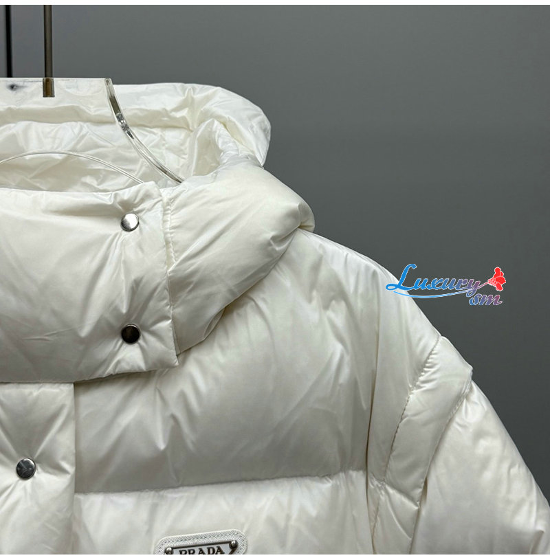PRADA-112400 프라다 2025 가을/겨울 신상 여성용 후드 퀼팅 패딩 점퍼 화이트 여성용
