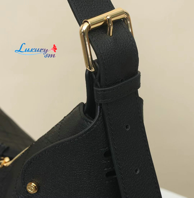 골드 피니시 메탈 버클 디테일의 길이 조절 가능한 가죽 탑 핸들