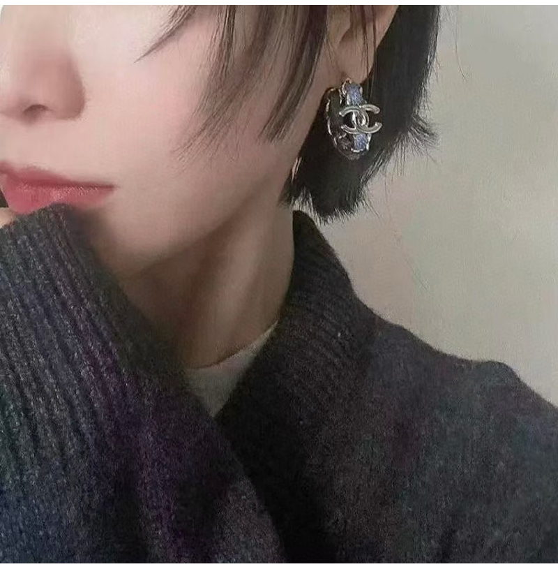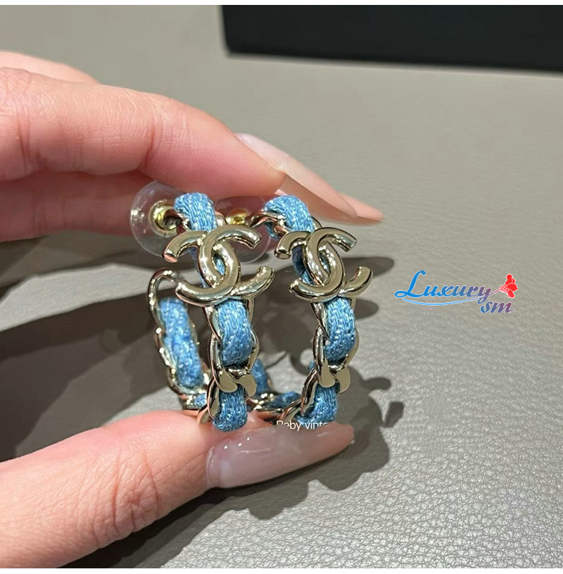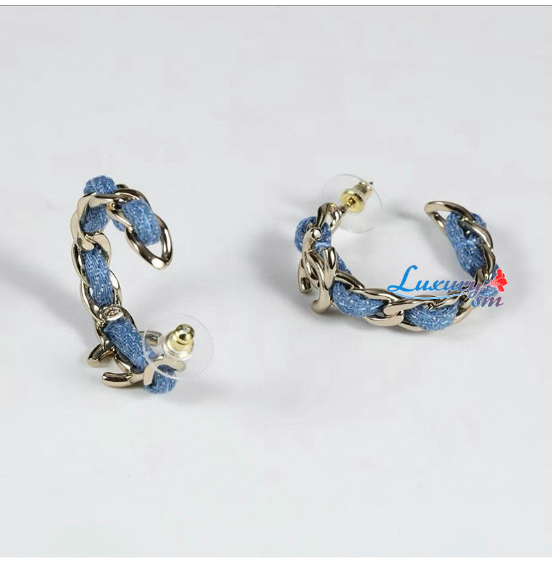 이어링 본체는 데님 소재에 메탈 체인과 더블 C 로고