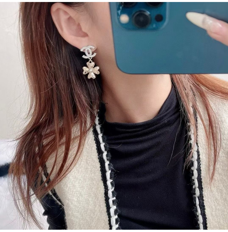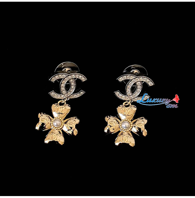 CHANEL-7619 샤넬 더블 C 풀 다이아몬드 펜던트 클로버 귀걸이