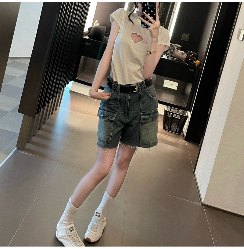MIUMIU-032402 26년 봄/여름 신상 카고 멀티 포켓 데님 숏팬츠 여성용